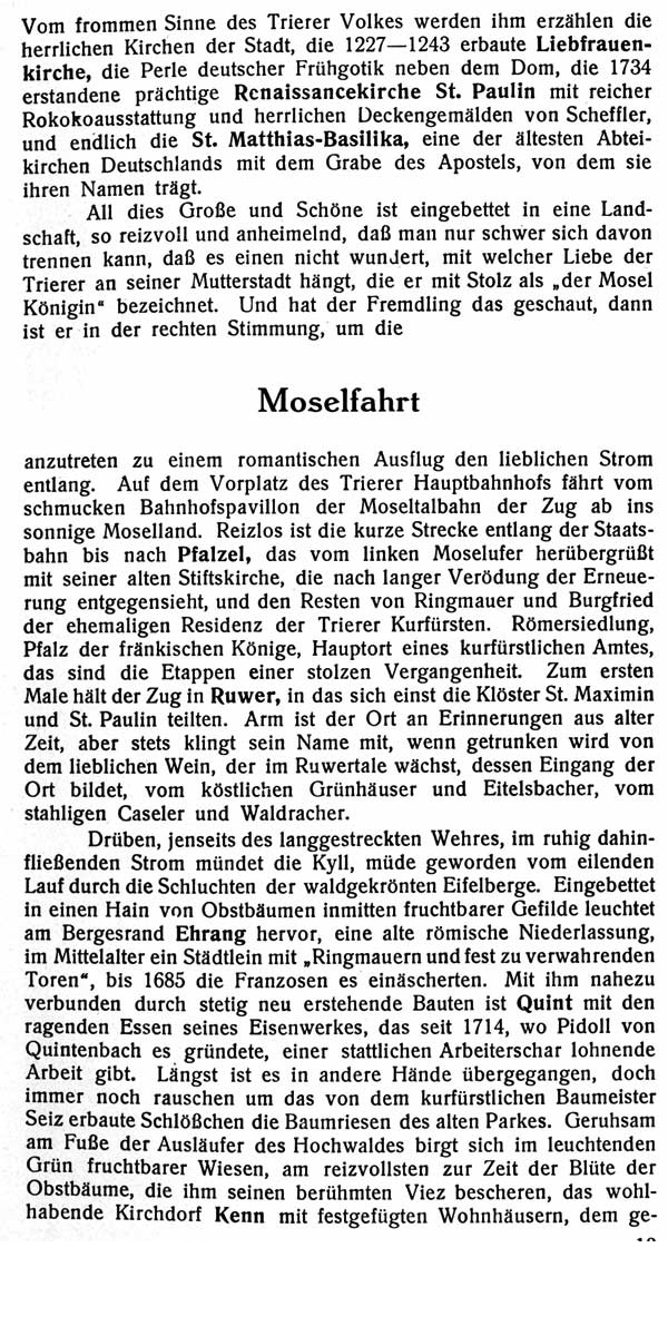 Die Moseltalbahn, liebevoll auch das »Saufbähnchen« genannt, verband von 1905 bis 1962 Trier mit Bullay und bildete so auf der rechten Moselseite einen Verkehrsstrang, der sämtliche Moselstädte und Dörfer anfuhr, die ja von der Hauptlinie der Eisenbahn nicht berührt wurden. Selbst in den Jahren vor der Einstellung hatte die Bahn noch Fahrgastzahlen, von denen manche Eisenbahnstrecke heute nur träumen kann. Sie war mit ihrem Personen- und Güterverkehr eine Lebensader des Moseltals und eine ganz besondere touristische Attraktion.